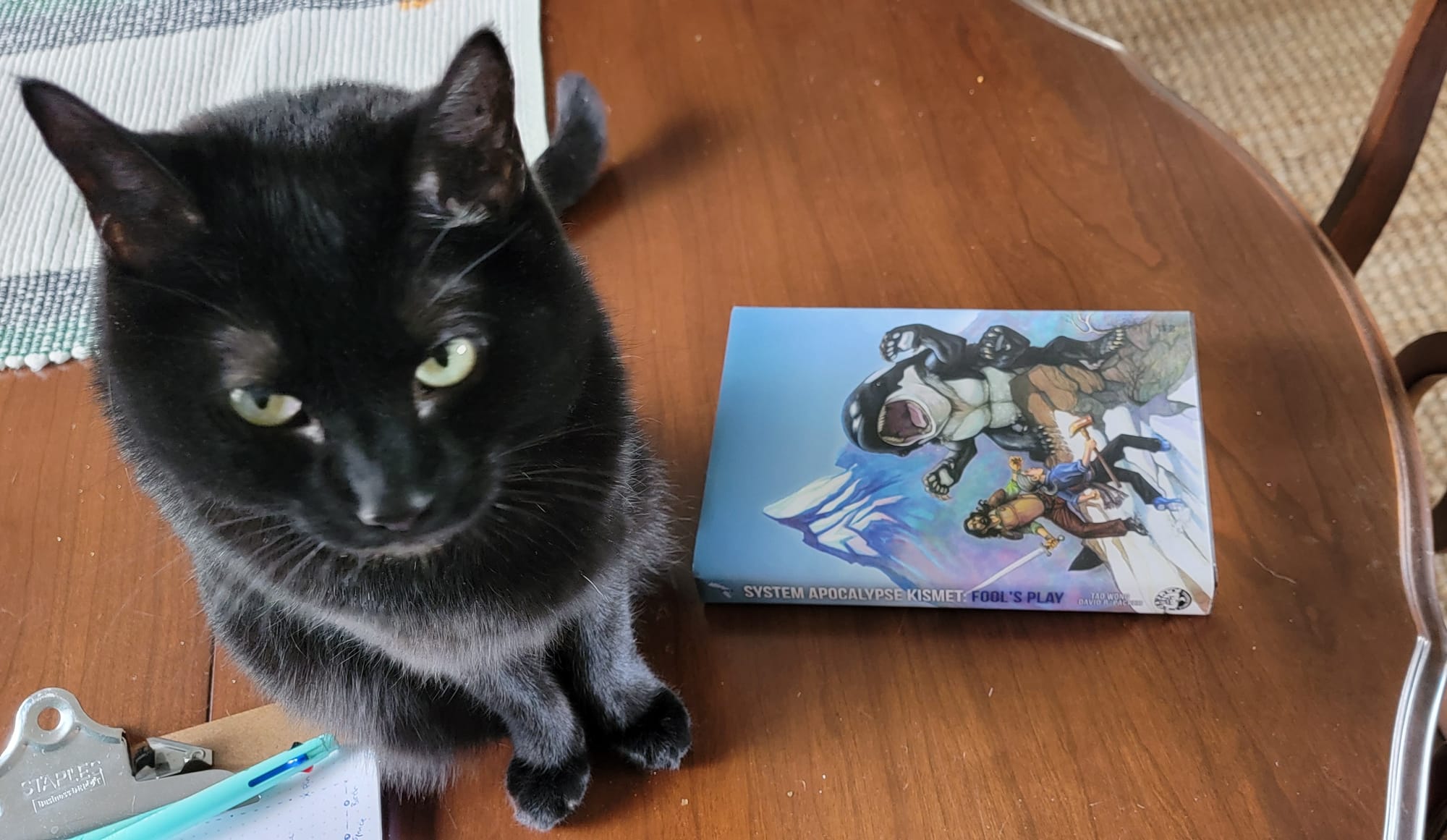 I thought I'd take a nice photo of the special Kickstarter first edition of book one, but Mazekin got cross at the lack of cat representation here, so...here you go.